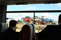 その後、石巻を紹介するホームページ「石巻百景」を運営する日下羊一さんに市内を案内していただきました。沿岸や河口付近の多くの土地で復旧・復興が進まず、空洞化が深刻になっている状況を伺いました。